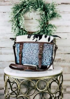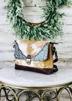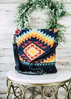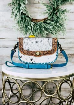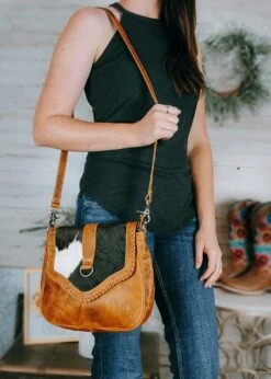 Concealed Carry Black & White Fringe Cowhide Crossbody Handbag