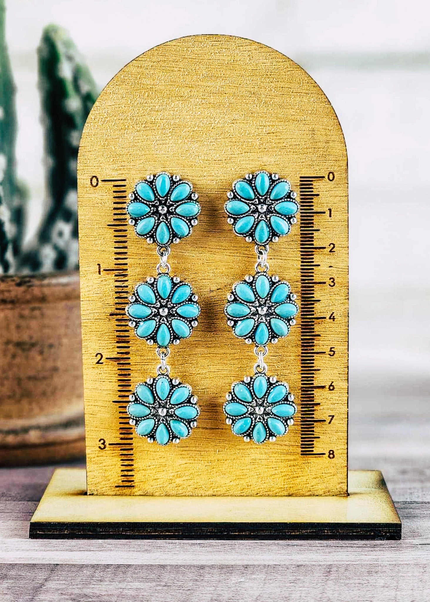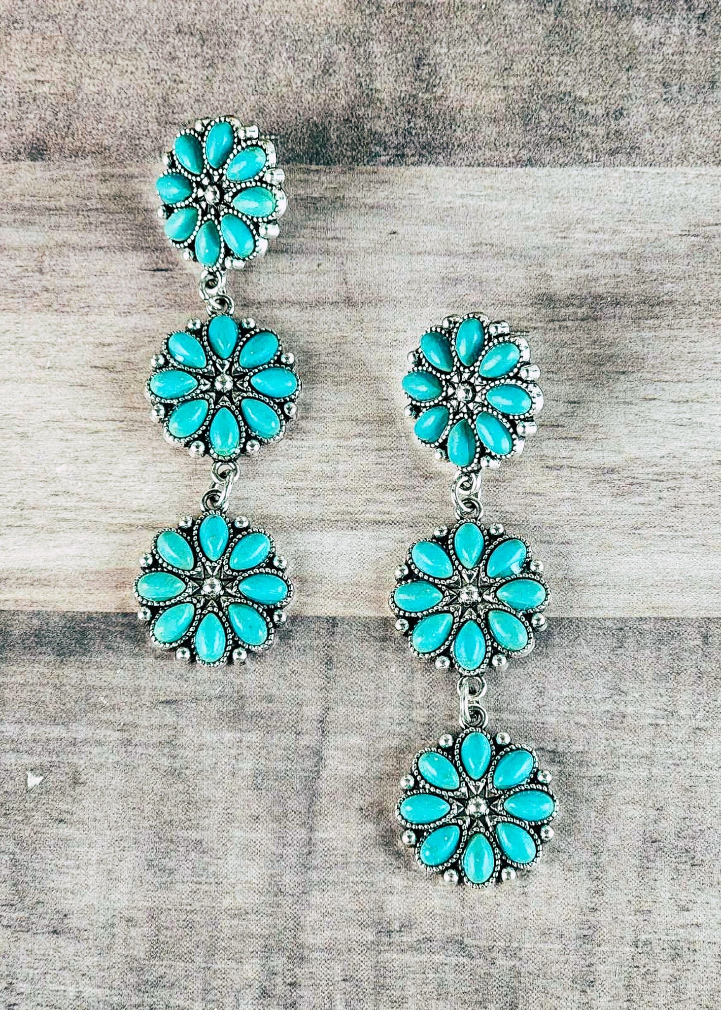 Be bold and beautiful with these earrings. Combine these with your style for a truly unique statement piece. Make your look pop with a lovely touch of turquoise. Stand out with confidence!