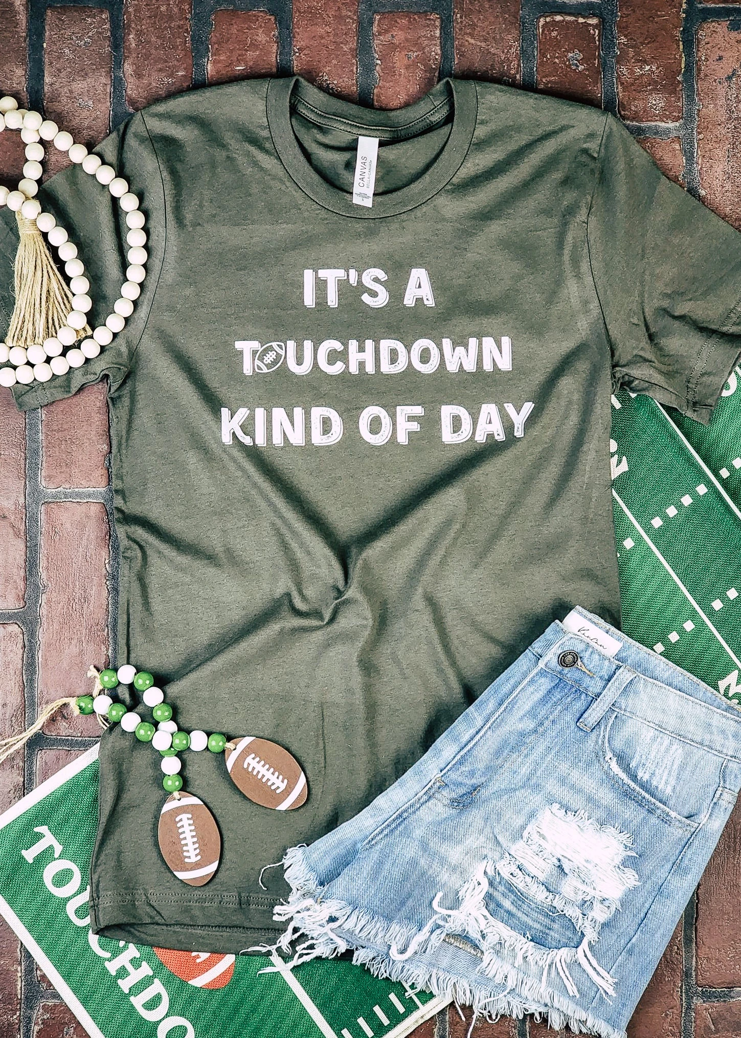 Army Green Touchdown Kind Of Day Short Sleeve Graphic Tee