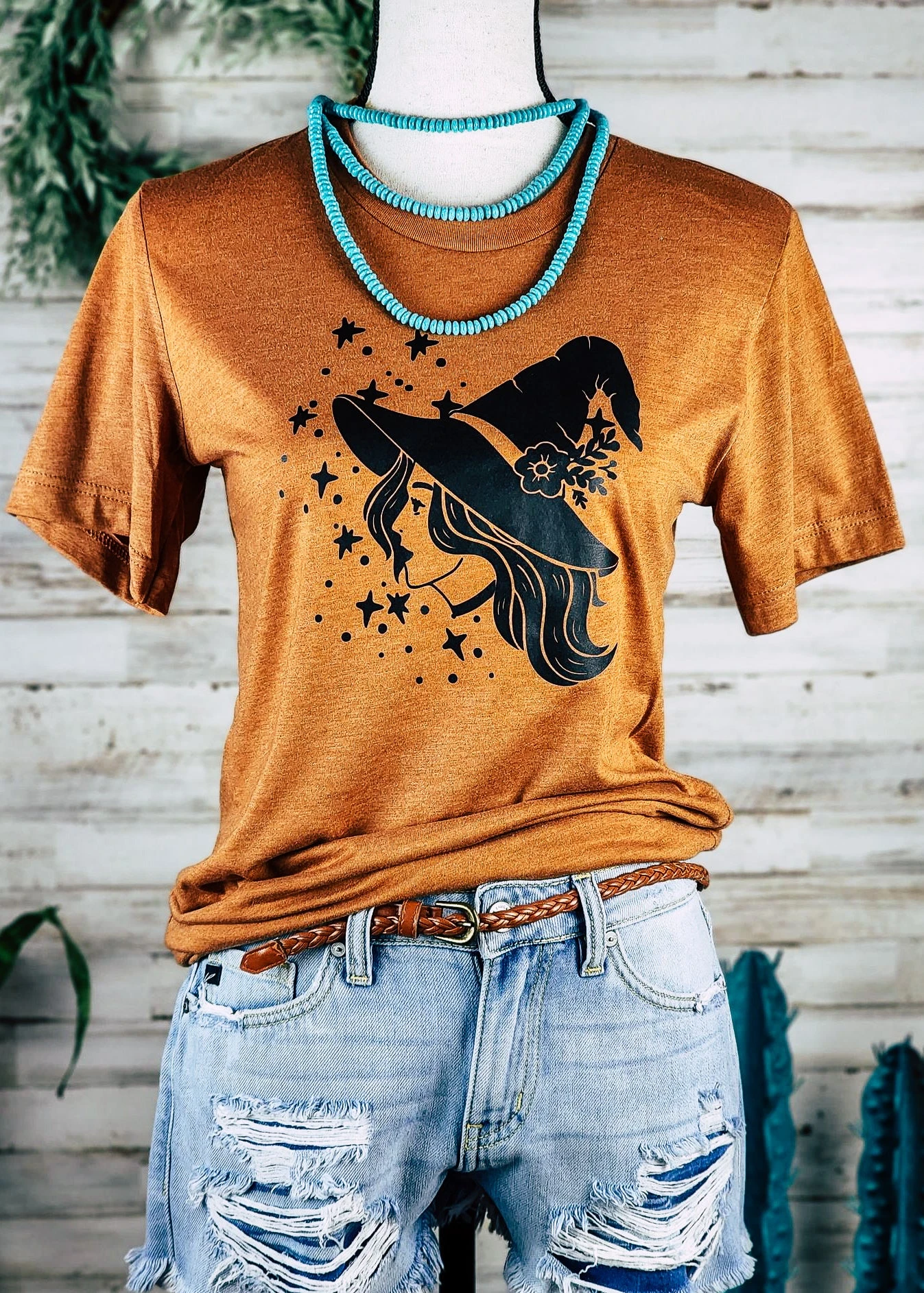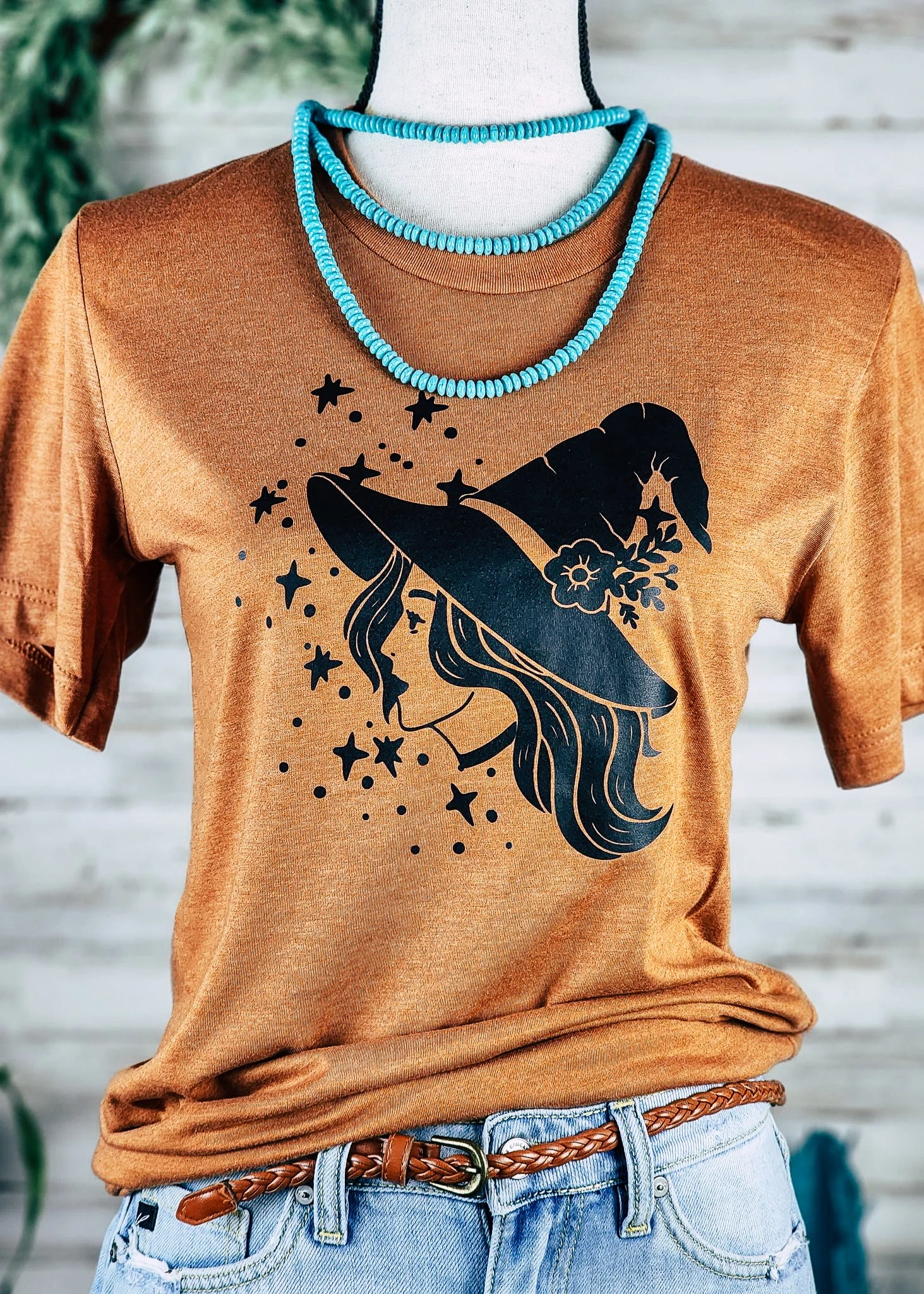 Autumn Orange Starry Witch Short Sleeve Graphic Tee