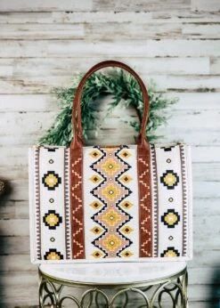 This charming tote bag is perfect for the modern cowgirl. Its aztec pattern will add a unique, stylish touch to your outfit. Roomy enough to hold your everyday essentials, it is sure to be a favorite of yours!