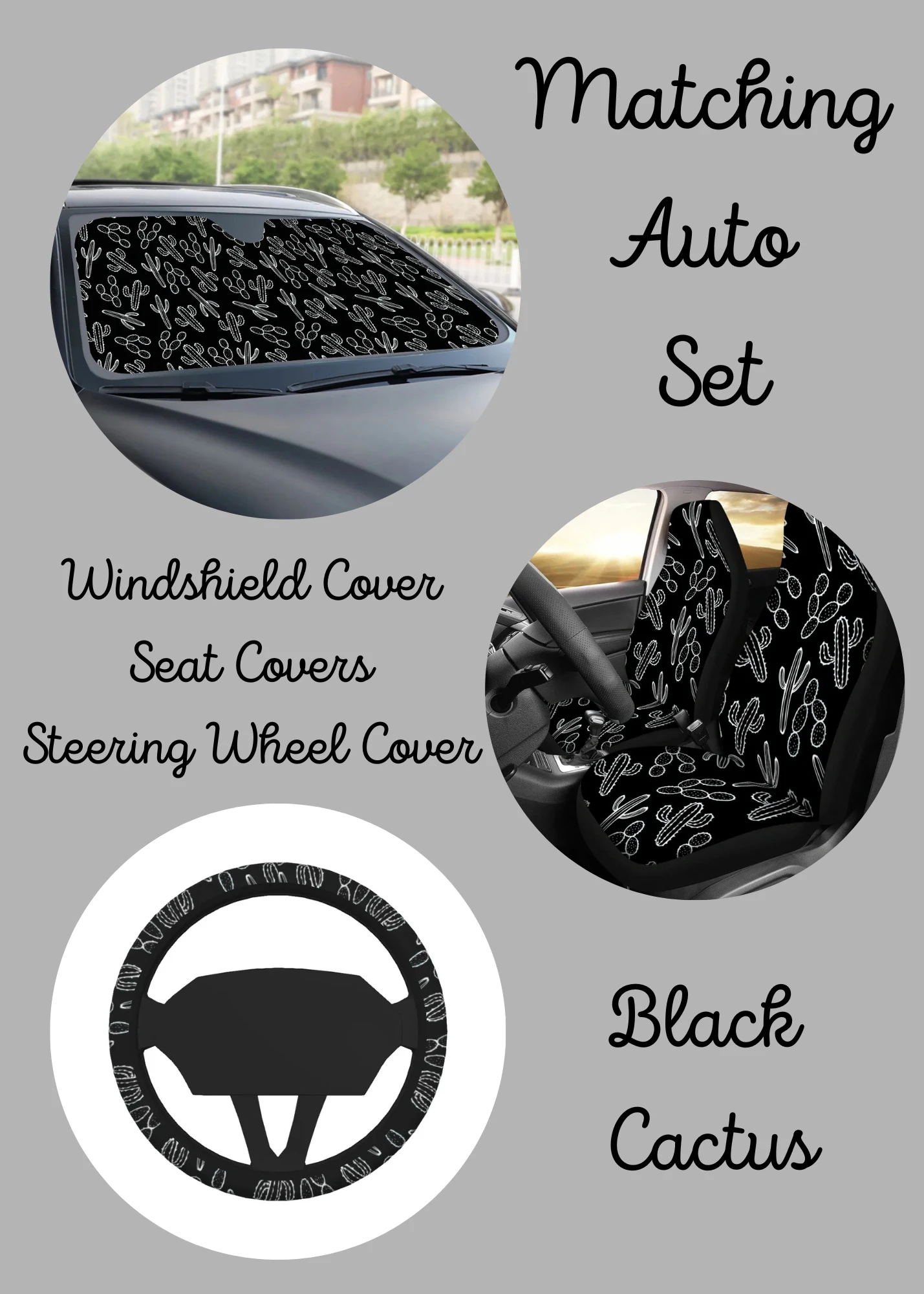 - Includes Steering Wheel Cover, Seat Covers, Windshield Cover