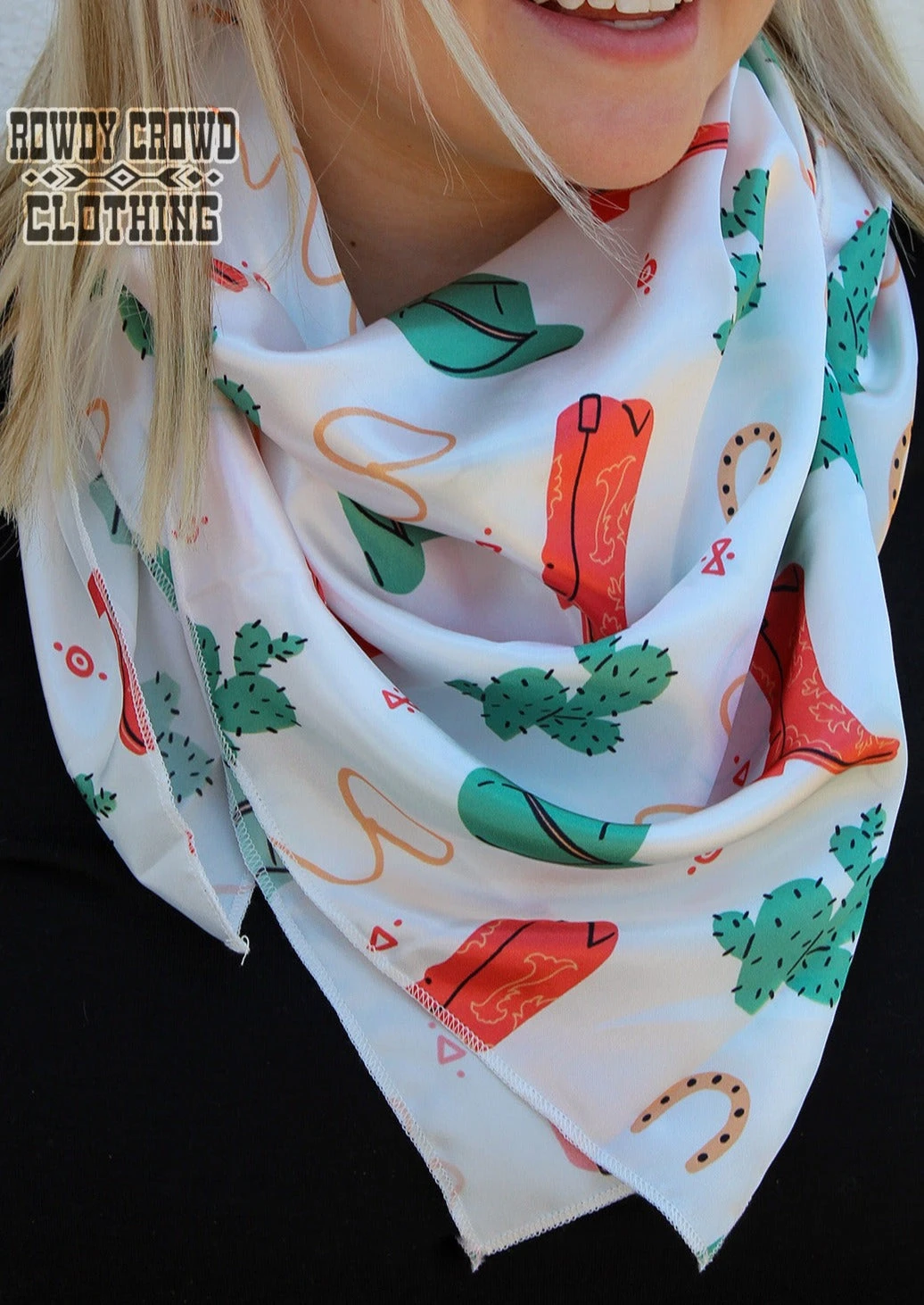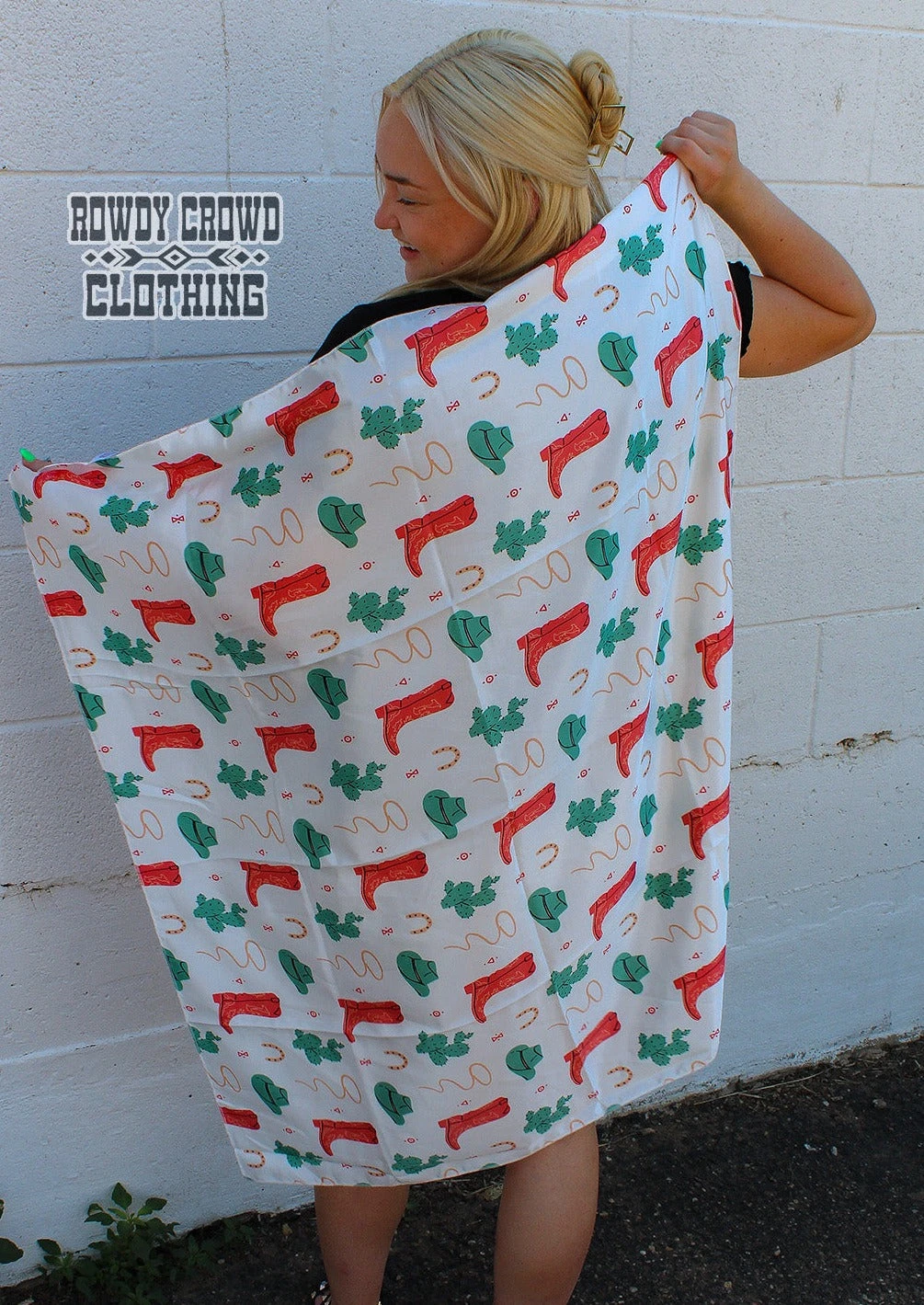 | Unleash your wild side with the Boozy Boot Wild Rag from Rowdy Crowd Clothing. This scarf, measuring approximately 36″ x 36″, is made of 100% polyester, offering durability and style. Its versatile design aligns with Rowdy Crowd’s ethos of embracing the loud and rowdy spirit within you. Embrace the rock and roll in a crazy world with this standout piece. |