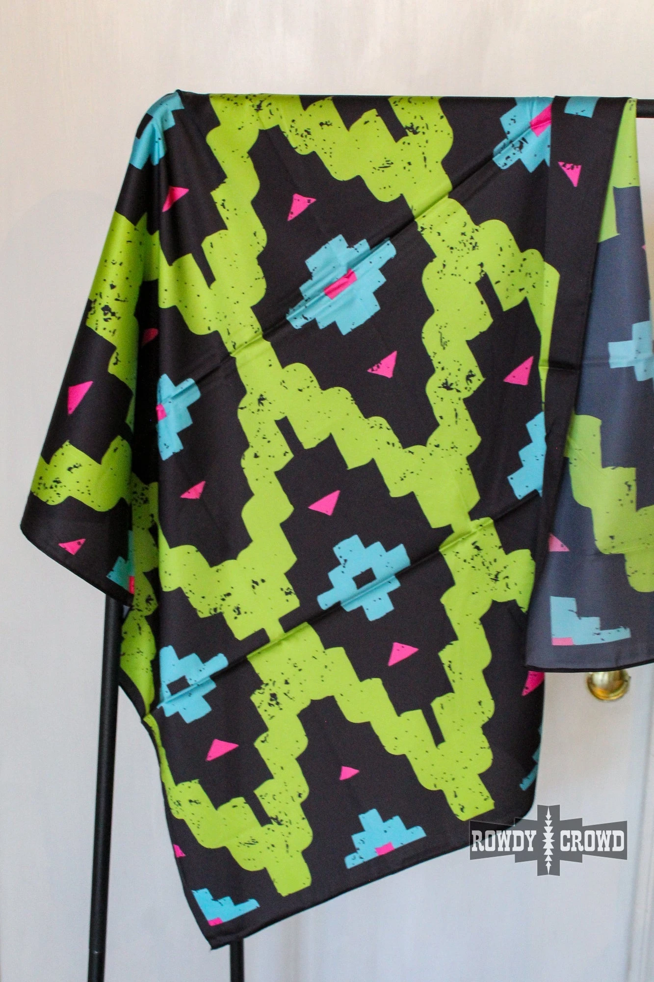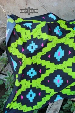 | The Calamity Jane Wild Rag from Rowdy Crowd Clothing, a must-have accessory for the bold neon lovers. This 36″ x 36″ women’s scarf, crafted from 100% polyester, showcases your rowdy spirit while offering a soft and comfortable feel. |