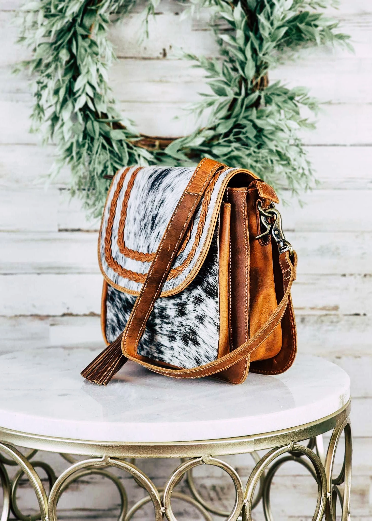 - Cowhide will vary. No two bags will be the same. You may or may not receive the image example shown. Please contact us if you’re looking for a specific cowhide.