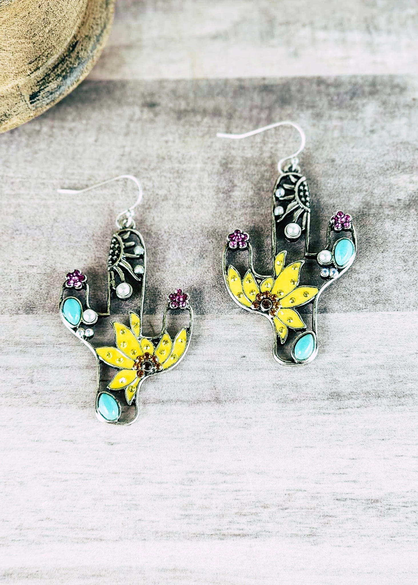 These Cactus Earrings have hints of turquoise and sunflowers inside. Pair these with any occasion and you’ll be styling!