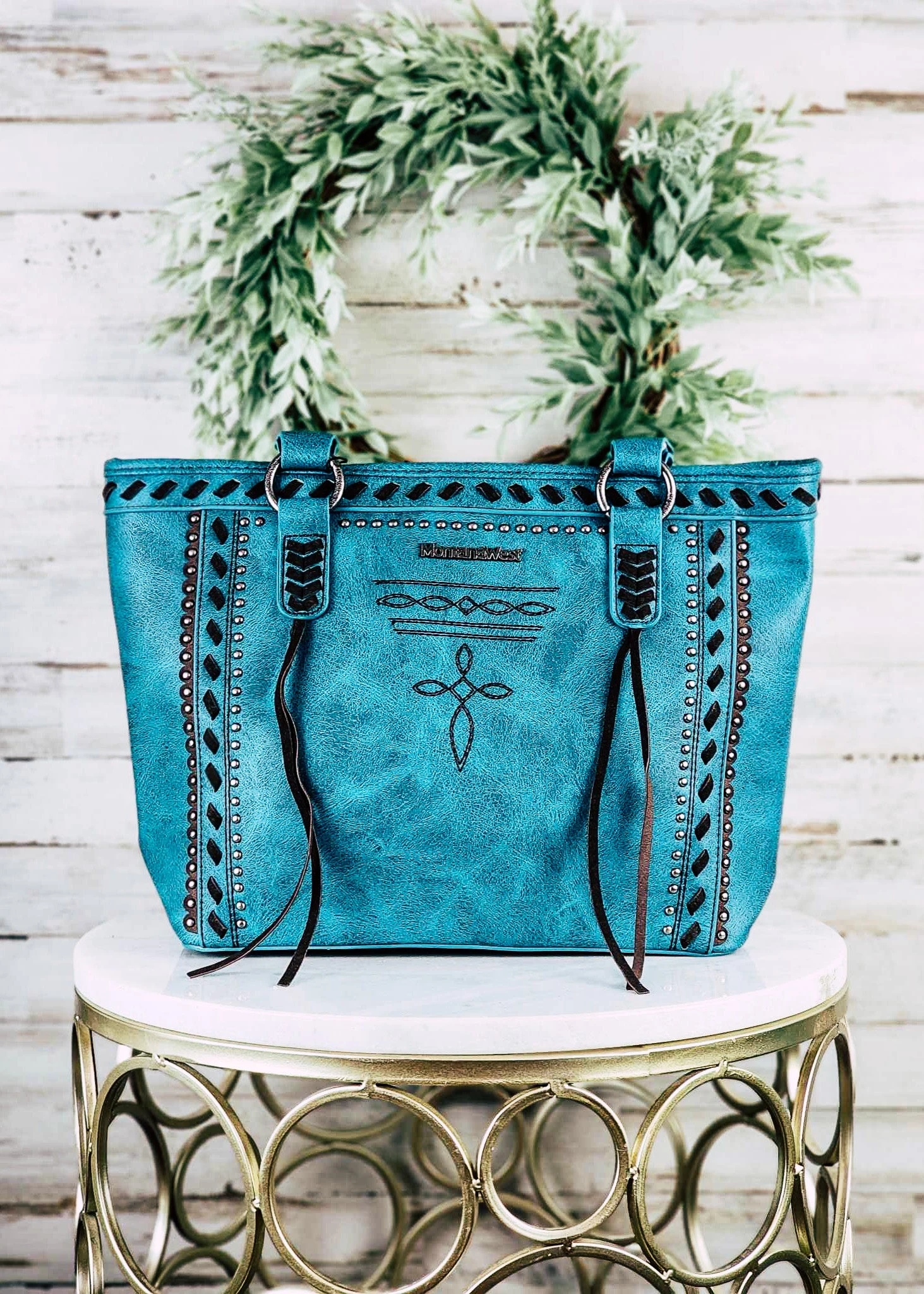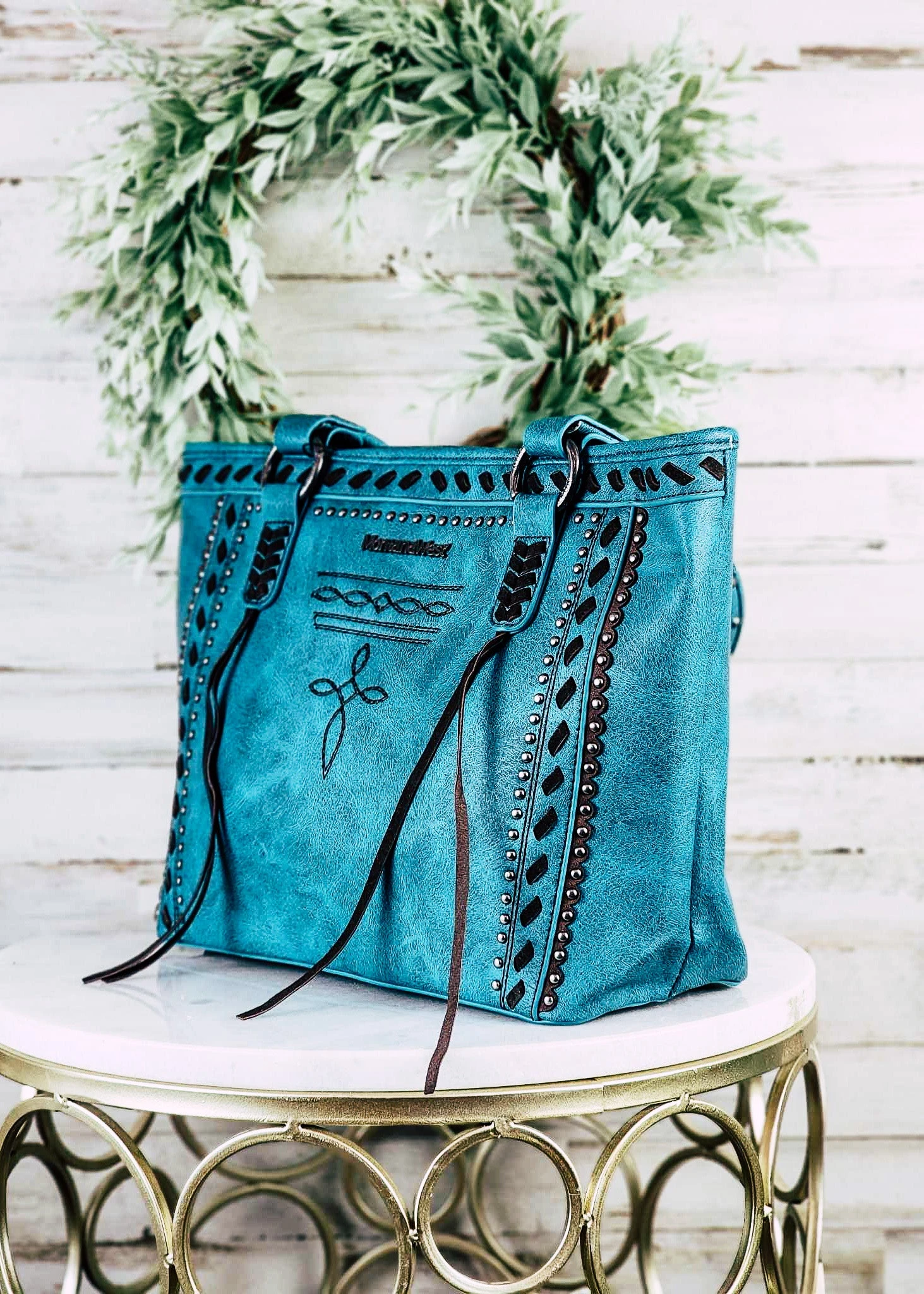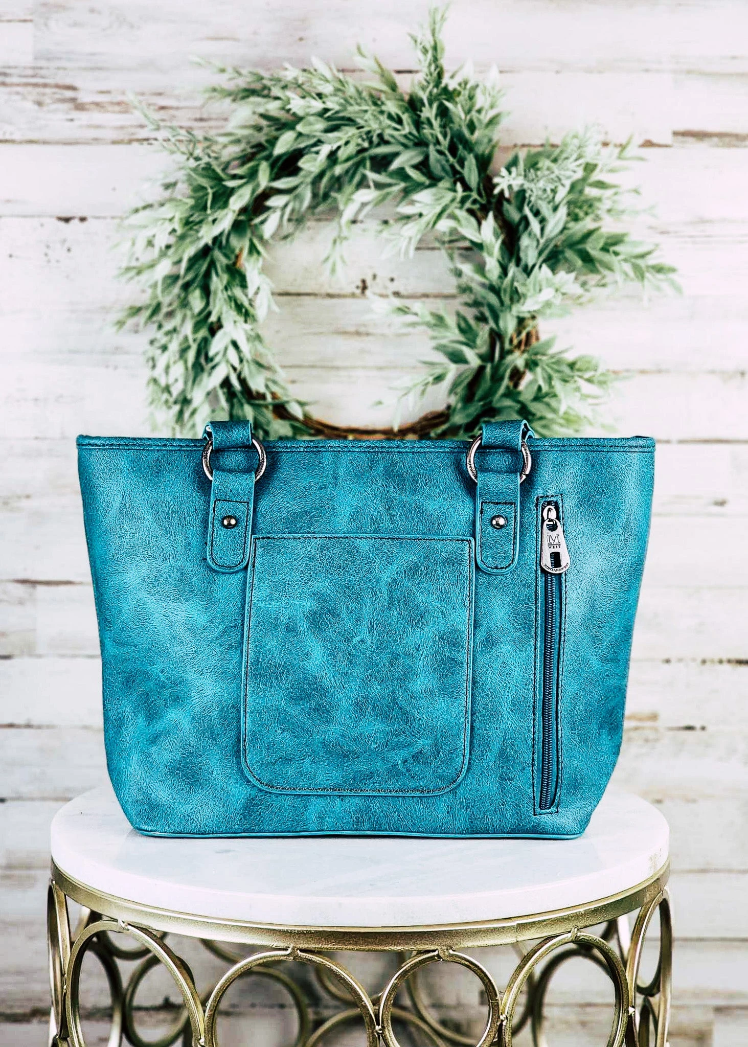 This Concealed Carry Turquoise Whipstitch Tote Handbag is a vibrant and versatile western-style bag. Its boldly-colored turquoise hue will bring any look to life while the sleek whipstitch design adds a subtle touch of elegance. With secure concealed carry pockets, you can feel confident and secure carrying your belongings wherever you go. Now that’s something to get excited about!