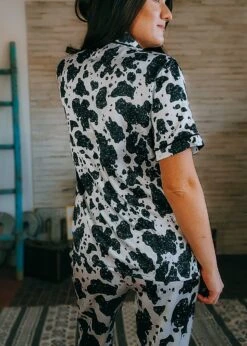 Be the cowgirl of your dreams with these exceptionally soft and silky pajamas! Bold cowprint and bright turquoise come together to create a wild western look that speaks of adventure and independence, while the luxurious fabric ensures you’ll sleep well no matter where your dreams take you.
