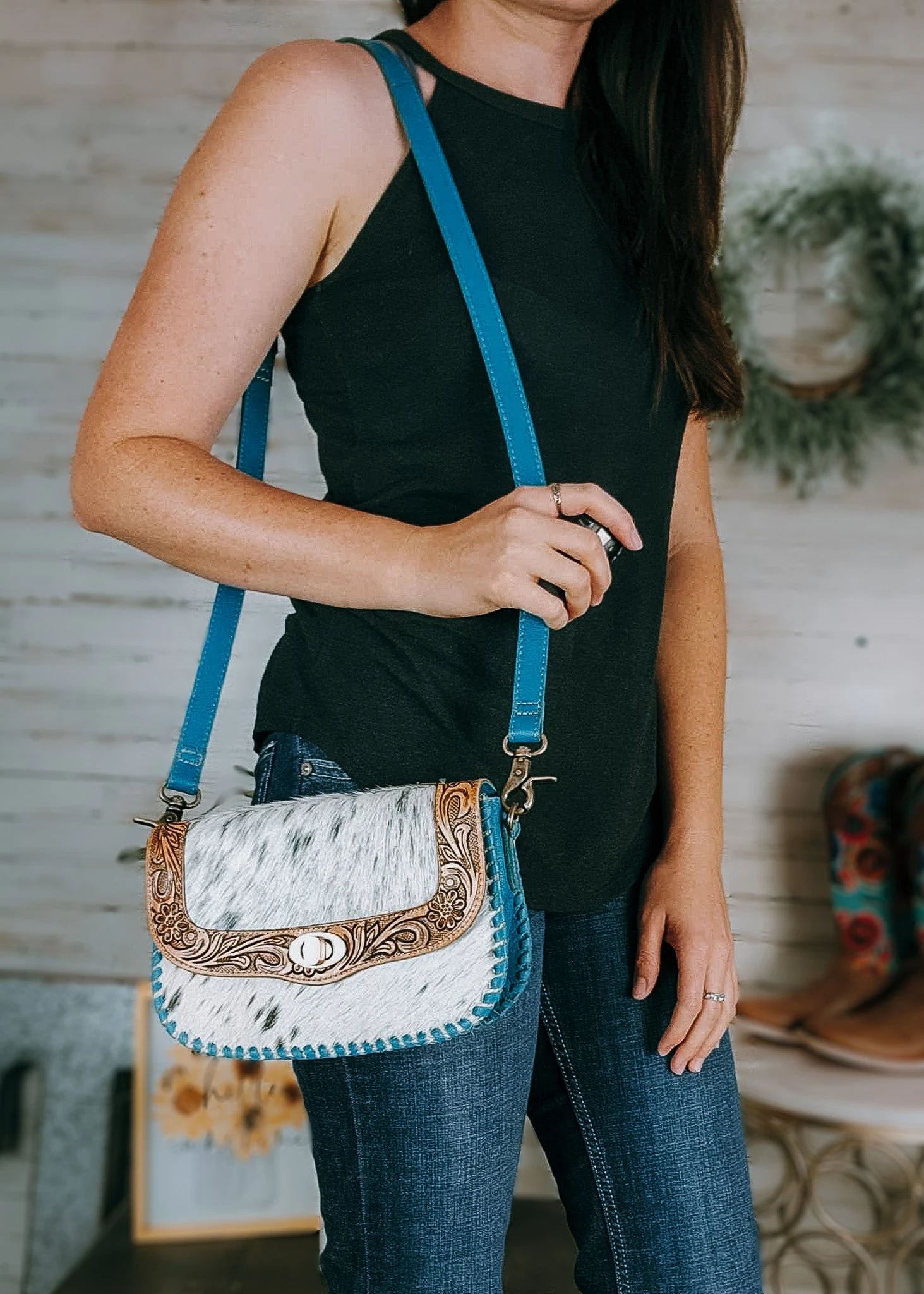 - Cowhide will vary. No two bags will be the same. You may or may not receive the image example shown. Please contact us if you’re looking for a specific cowhide.