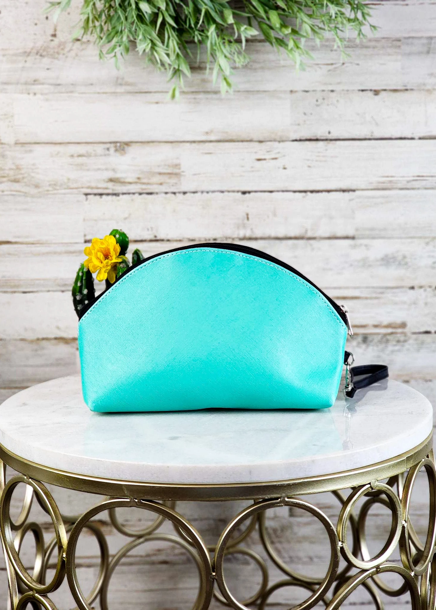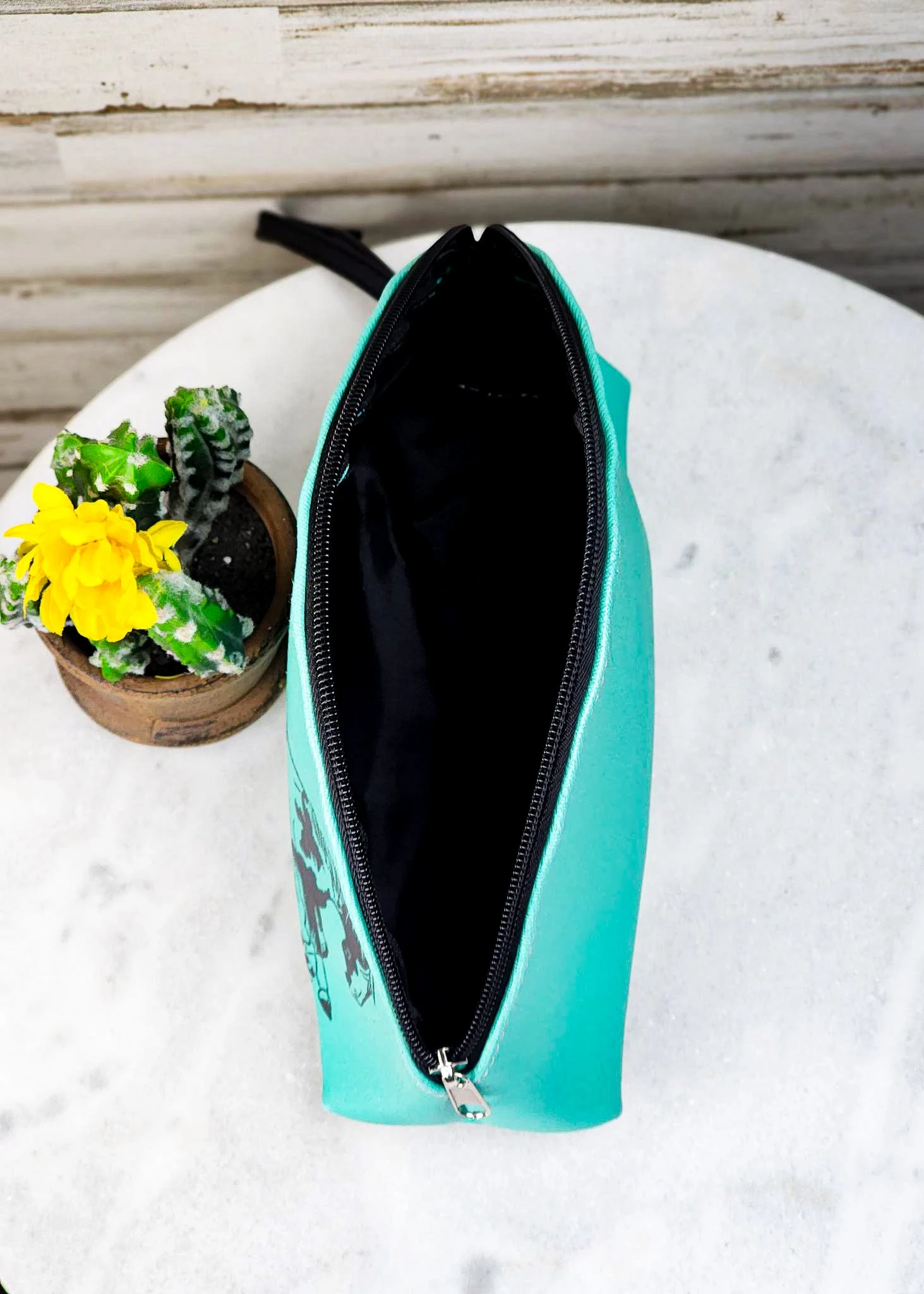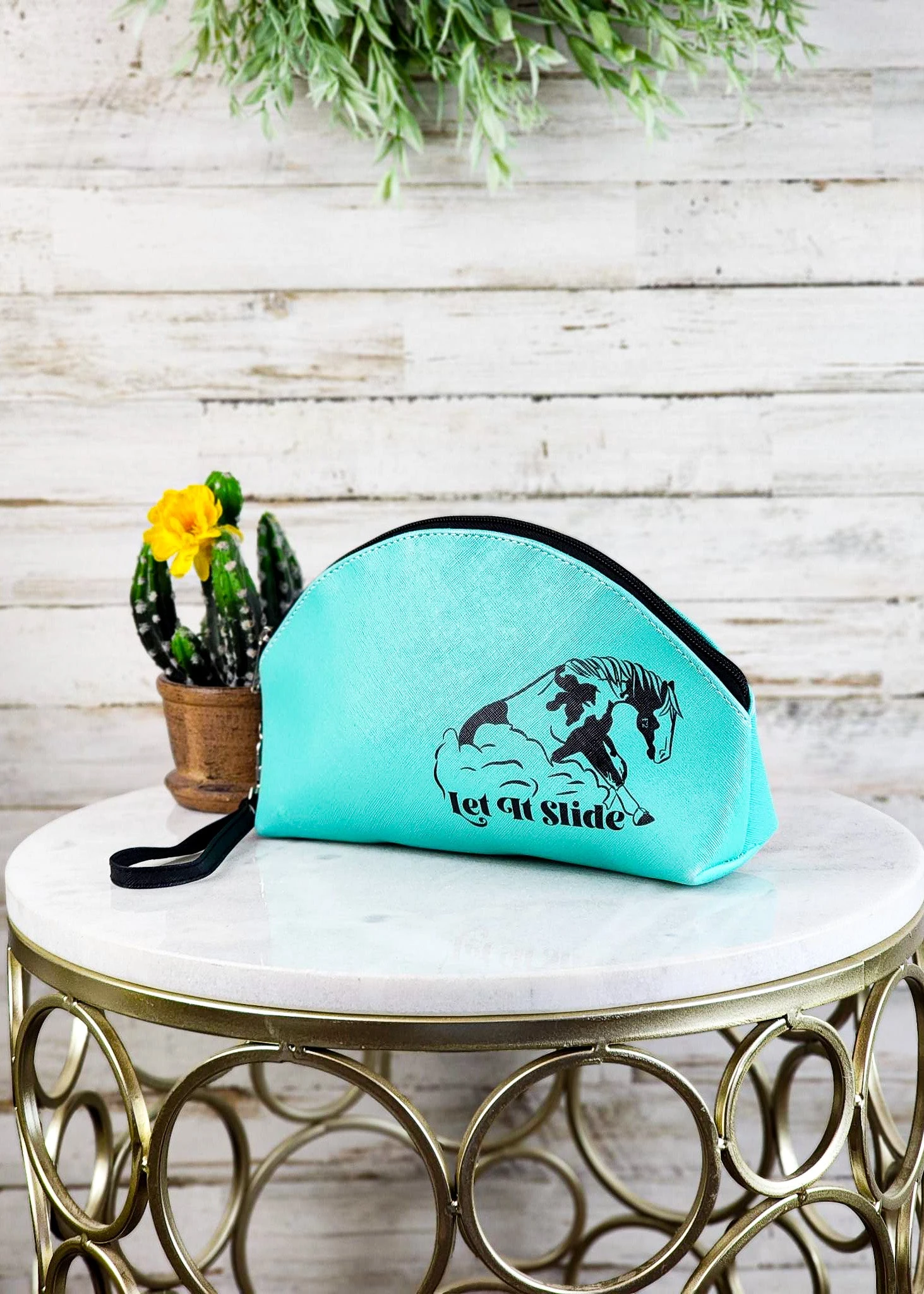 Organize your beauty essentials in style with the Let It Slide Zip Cosmetic Bag! This western-inspired bag is a chic way to keep all of your cosmetics, brushes, and skin care products organized. Its trendy turquoise design is sure to get you noticed – now you can start and end your day looking fashionably fabulous!