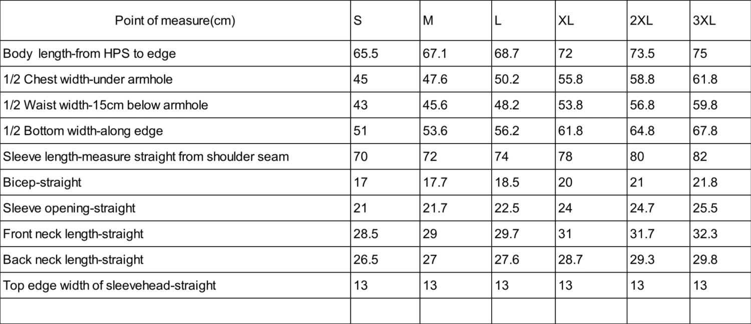 | Size | Small, Medium, Large, XL, 2XL, 3XL |