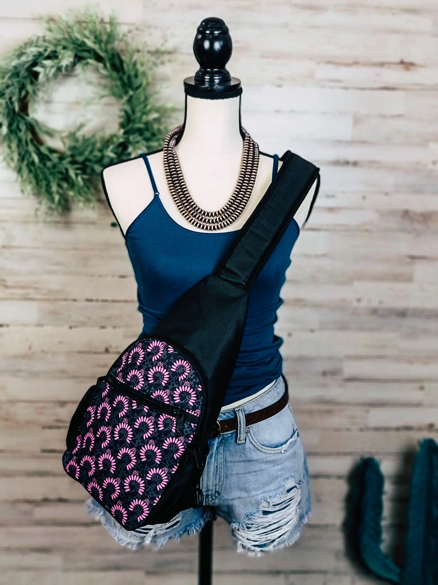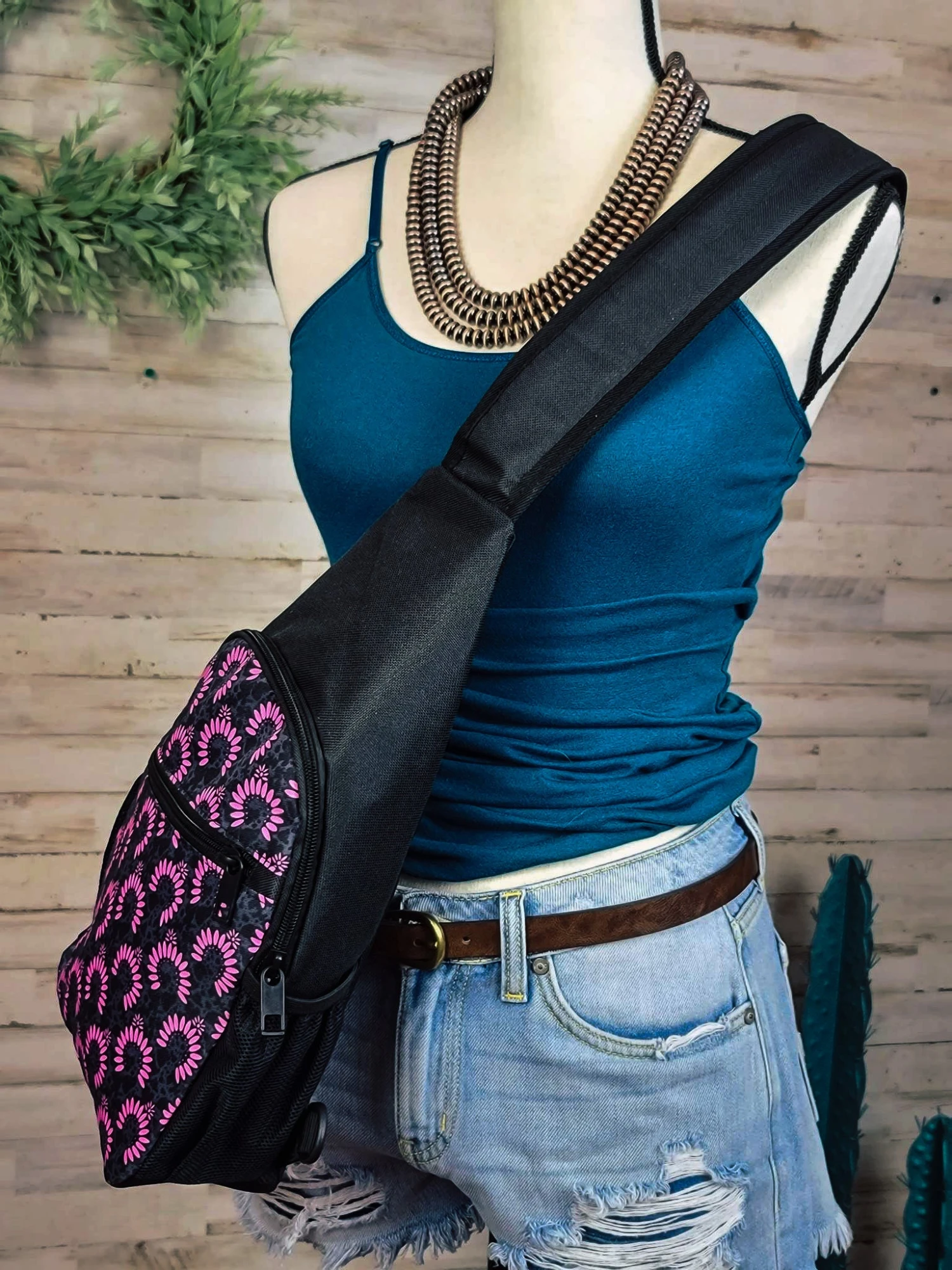 Take this Pink Squash Blossom Sling Bag for a ride and show off your cowgirl spirit! Perfect for storing your goods, this western-style bag is sure to turn heads. So, round ’em up, grab your sling bag, and let your inner cowgirl shine!