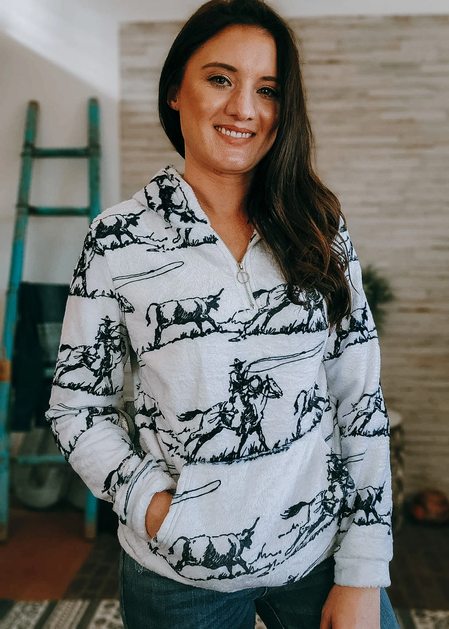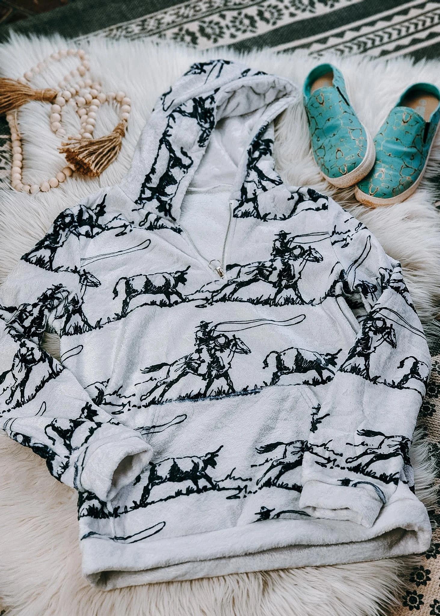This western ranch-style hoodie is designed for comfort and function. The fleece fabric is super-soft and warm, making it perfect for those chilly days – you’ll never want to take it off! Stay cozy, look cool, and live your best western life.
