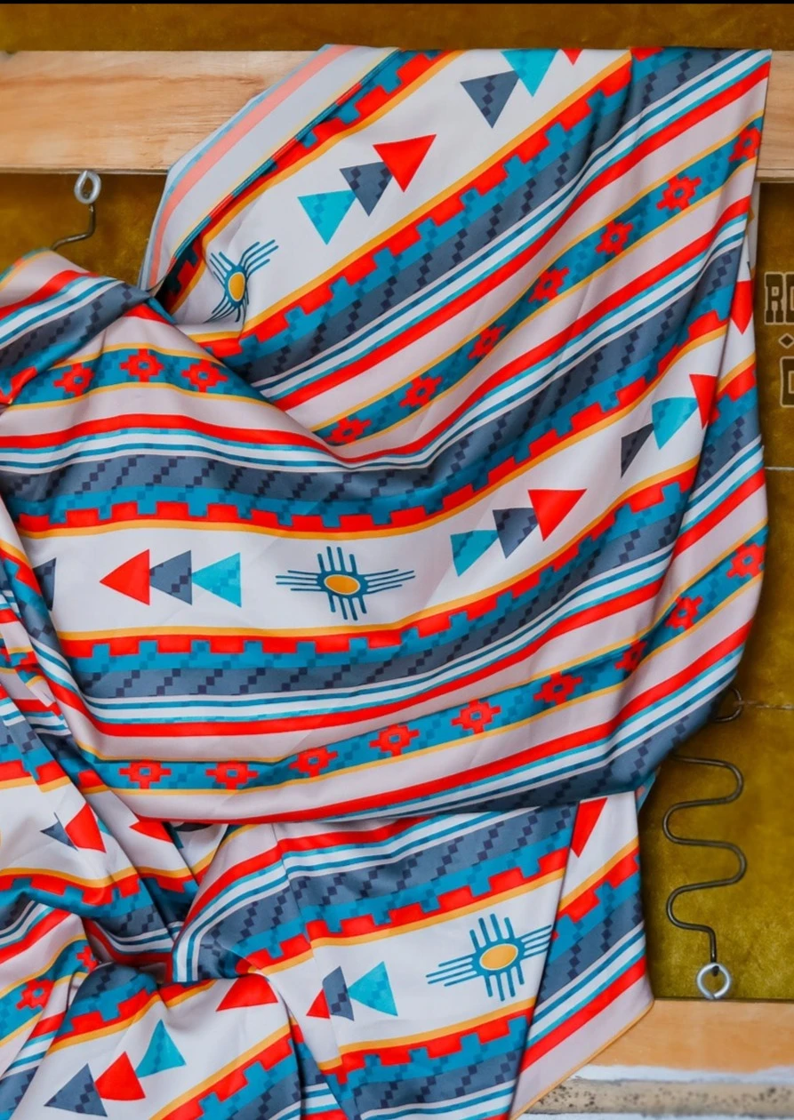 Your bling dream come true! Cream shorts with turquoise, orange, and black aztec pattern and sequin detailing. With an elastic waistband and drawstring, these shorts are super comfy for going out or even just lounging around!