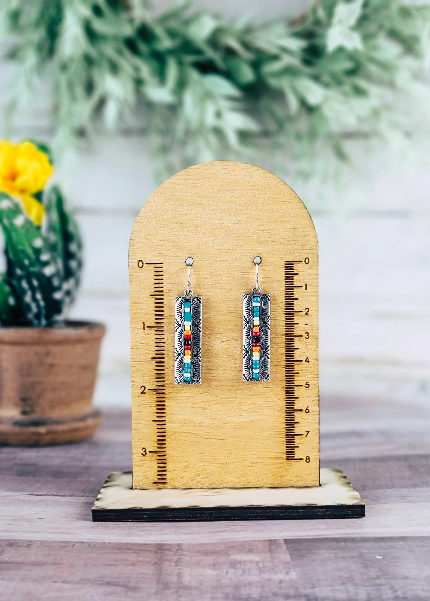 Embody the vibrant spirit of a Southwest fiesta with these beautiful Serape Rectangle Earrings. Incredibly detailed with an eye-catching design, these earrings will be sure to steal the show wherever you go. Celebrate summer all year round with these unique earrings!