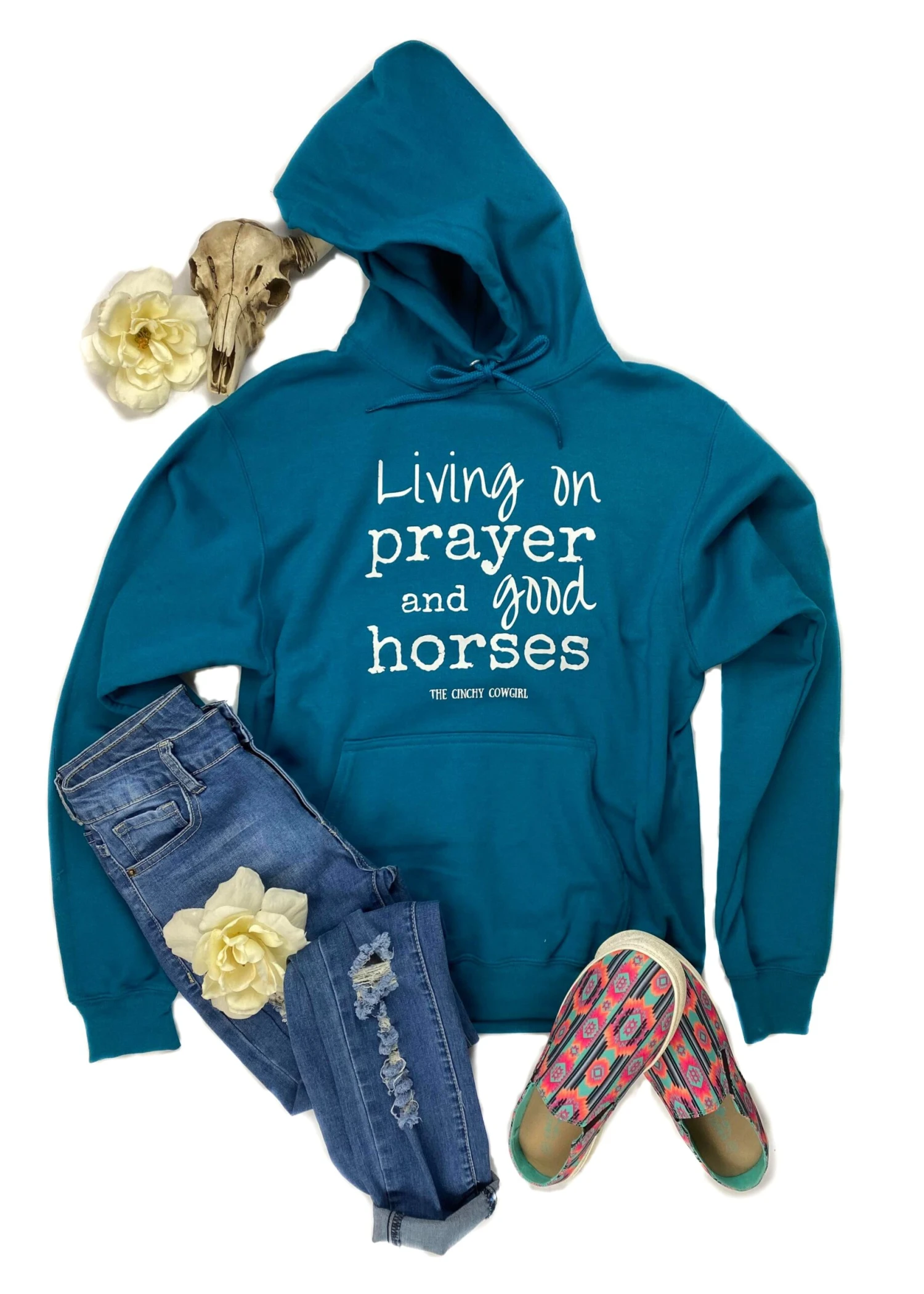 Be the first to review “Teal Living On Prayer & Good Horses Hoodie” Cancel reply