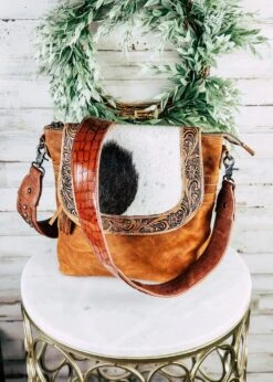 Unleash your inner cowgirl with this Cinchy Cowgirl sling bag! This hip western bag is designed with a striking turquoise brand combination for rustic flair. Its adjustable strap and sleek design make it a convenient and fashionable way to tote around your essentials.
