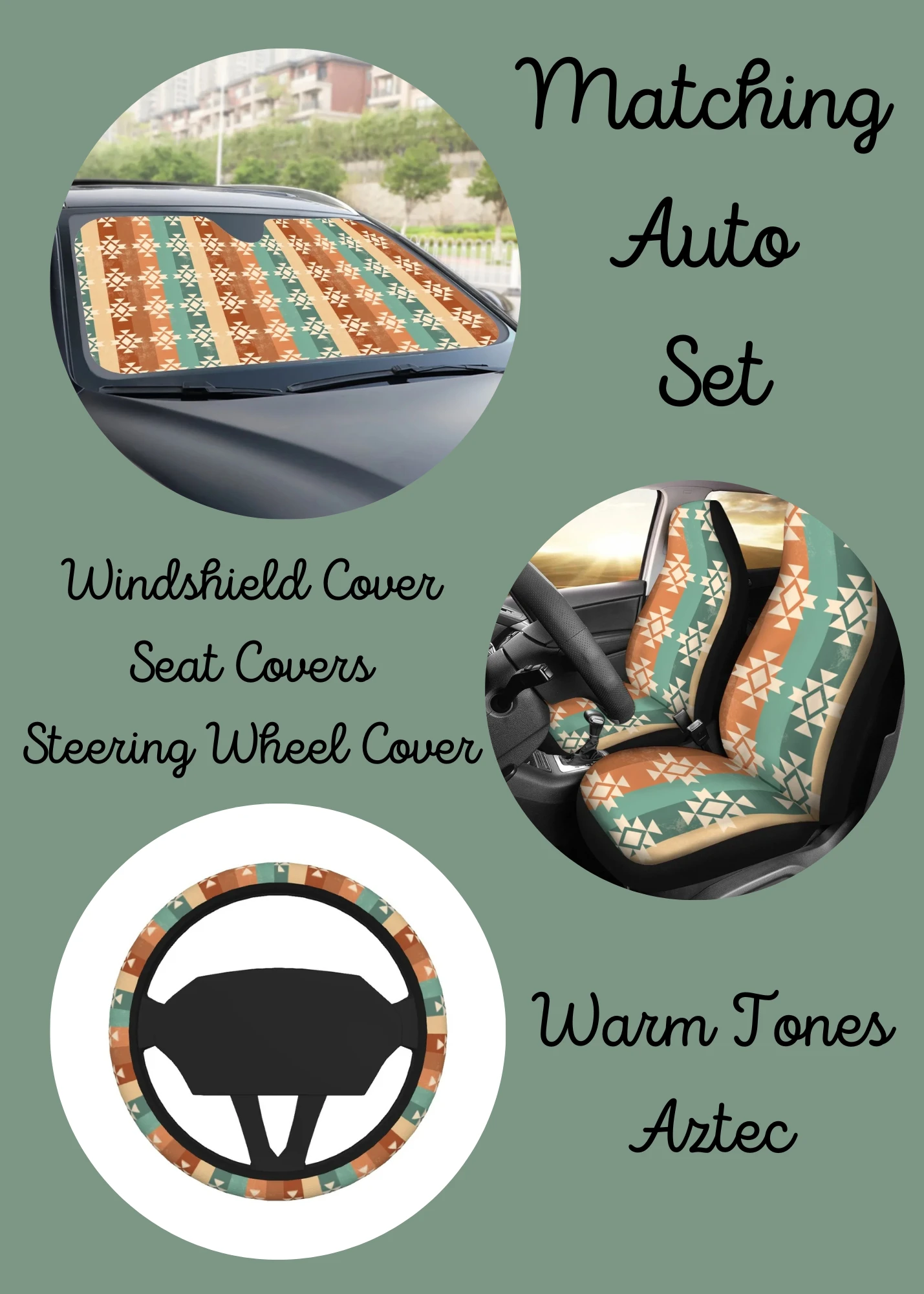 - Includes Steering Wheel Cover, Seat Covers, Windshield Cover