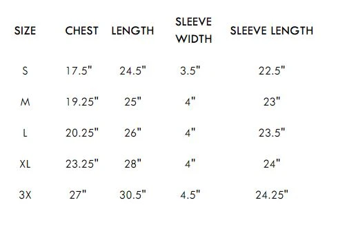 | Size | Small, Medium, Large, XL, 2XL, 3XL |