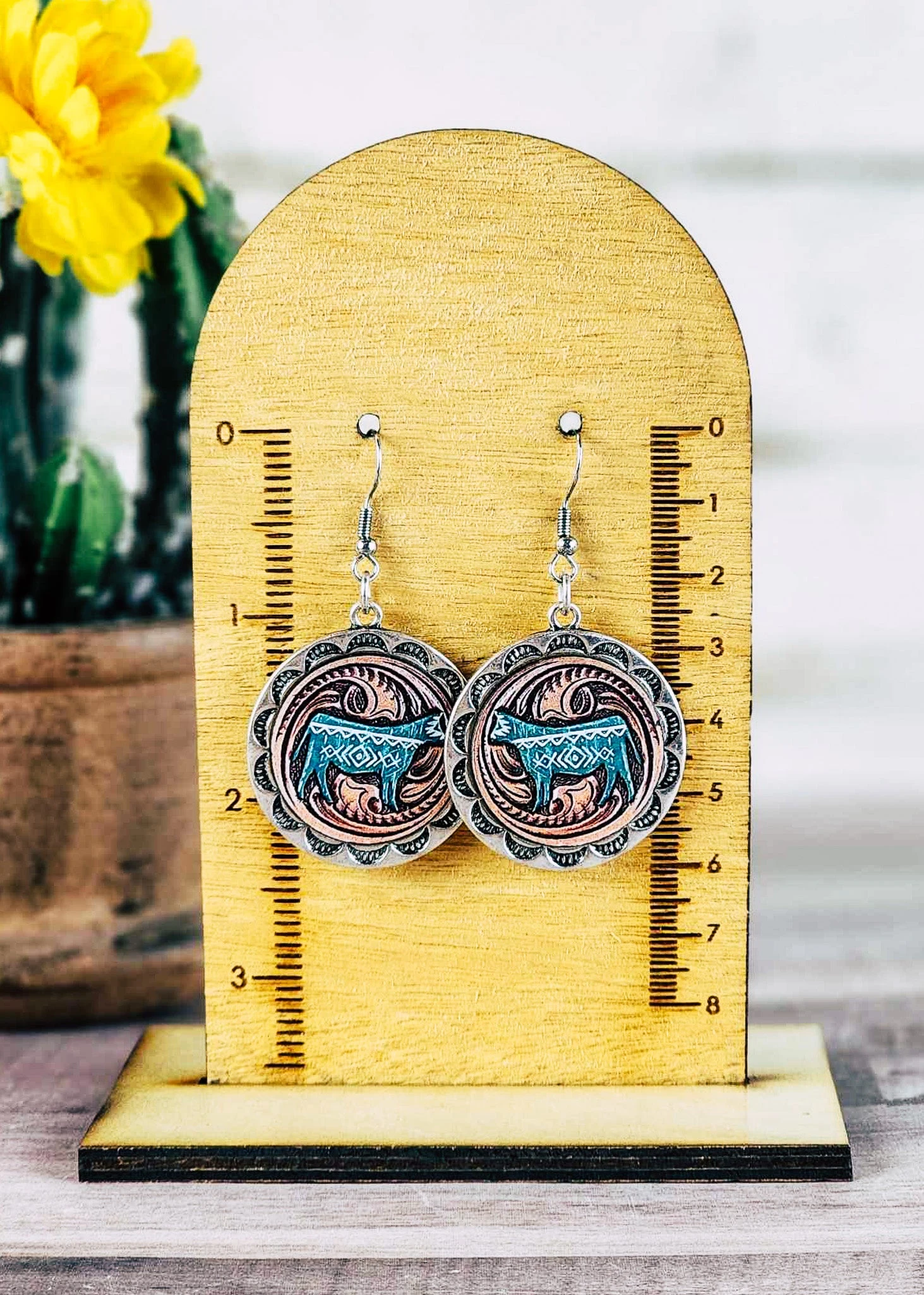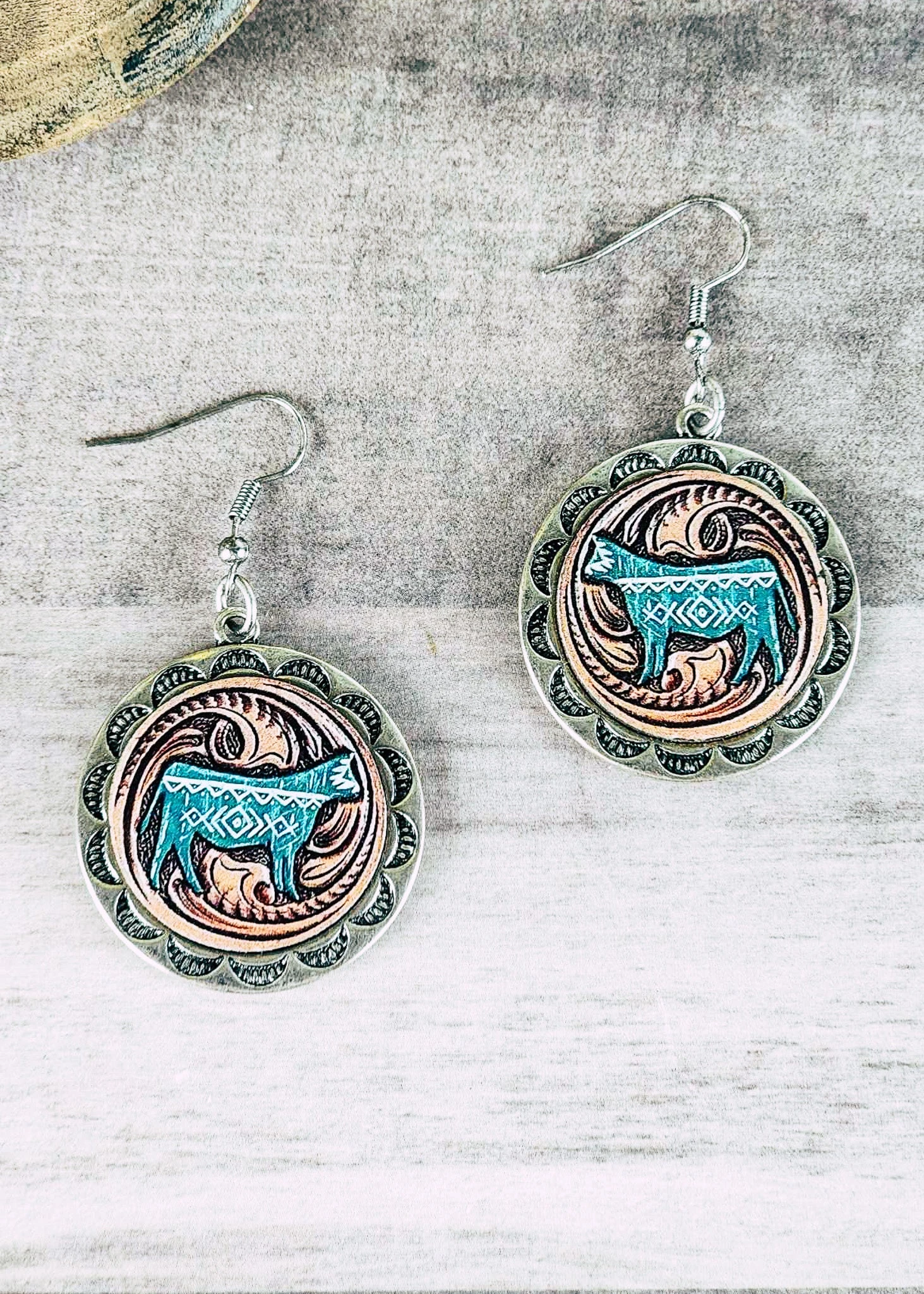 Show off you passion of showing cattle with these tooled leather earrings. Perfect for the show ring, a night out, work, or just casual!