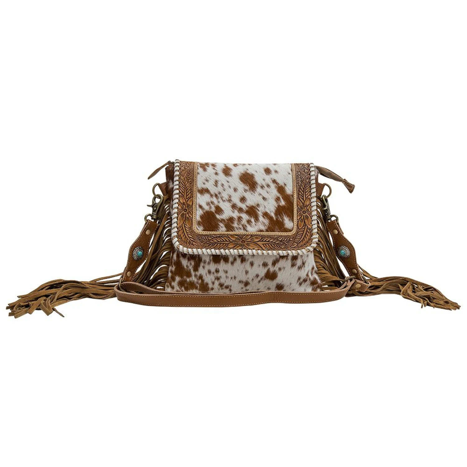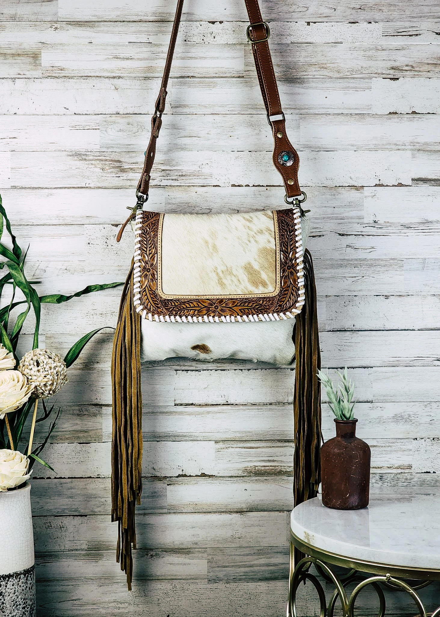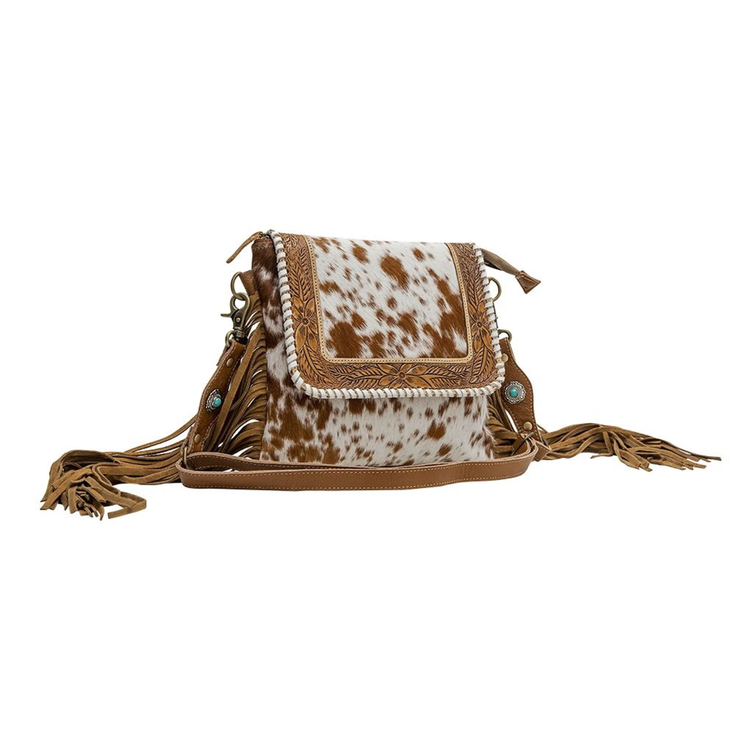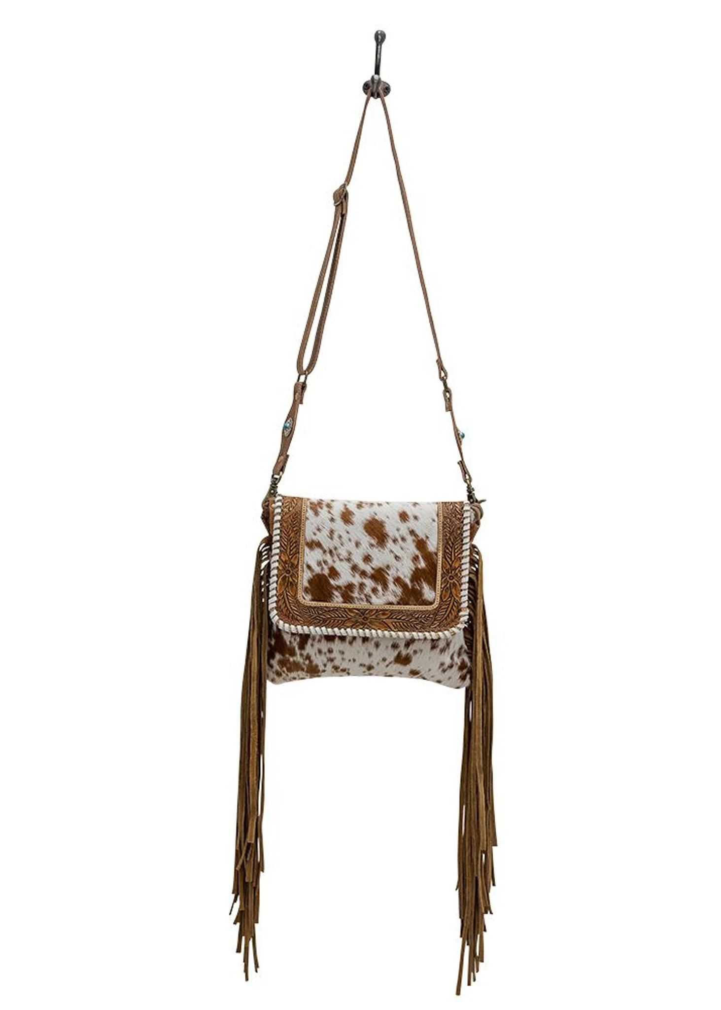 Upgrade your style with this beautiful crossbody handbag! This piece is the perfect accessory for any look and boasts eye-catching cowhide and fashionable fringe details! The adjustable strap ensures a perfect fit and easy portability, making this bag a must-have for any fashionista.